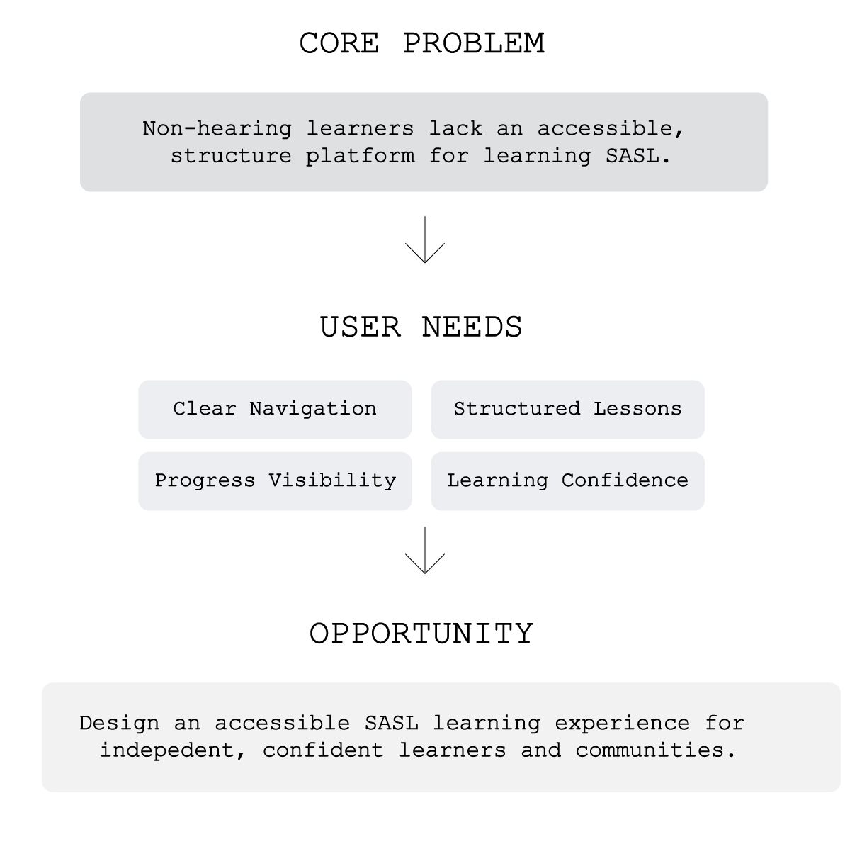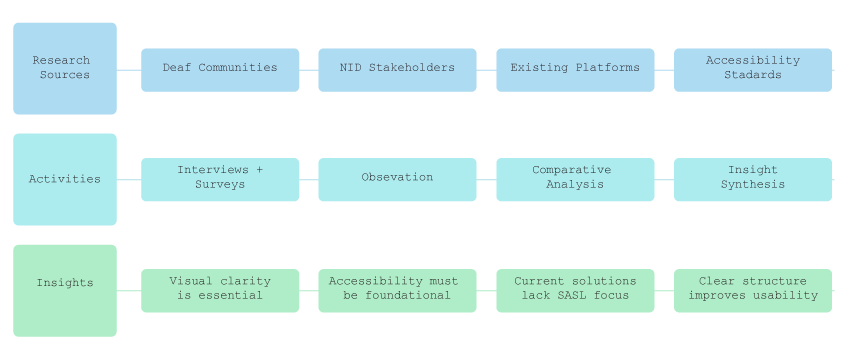 After immersing myself in the experiences of Deaf learners and stakeholders, I synthesized my findings to define the core problems and identify meaningful opportunities for improvement. This phase established a clear foundation for the design direction.